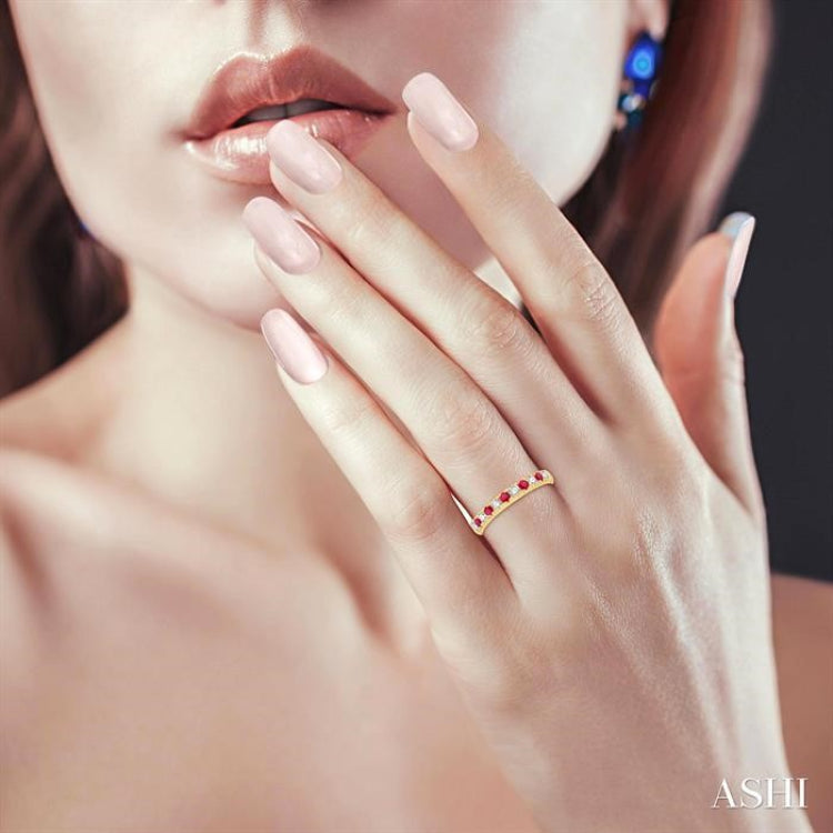 2.3 MM Ruby and 1/4 ctw Round Cut Diamond Precious Wedding Band in 14K Yellow Gold